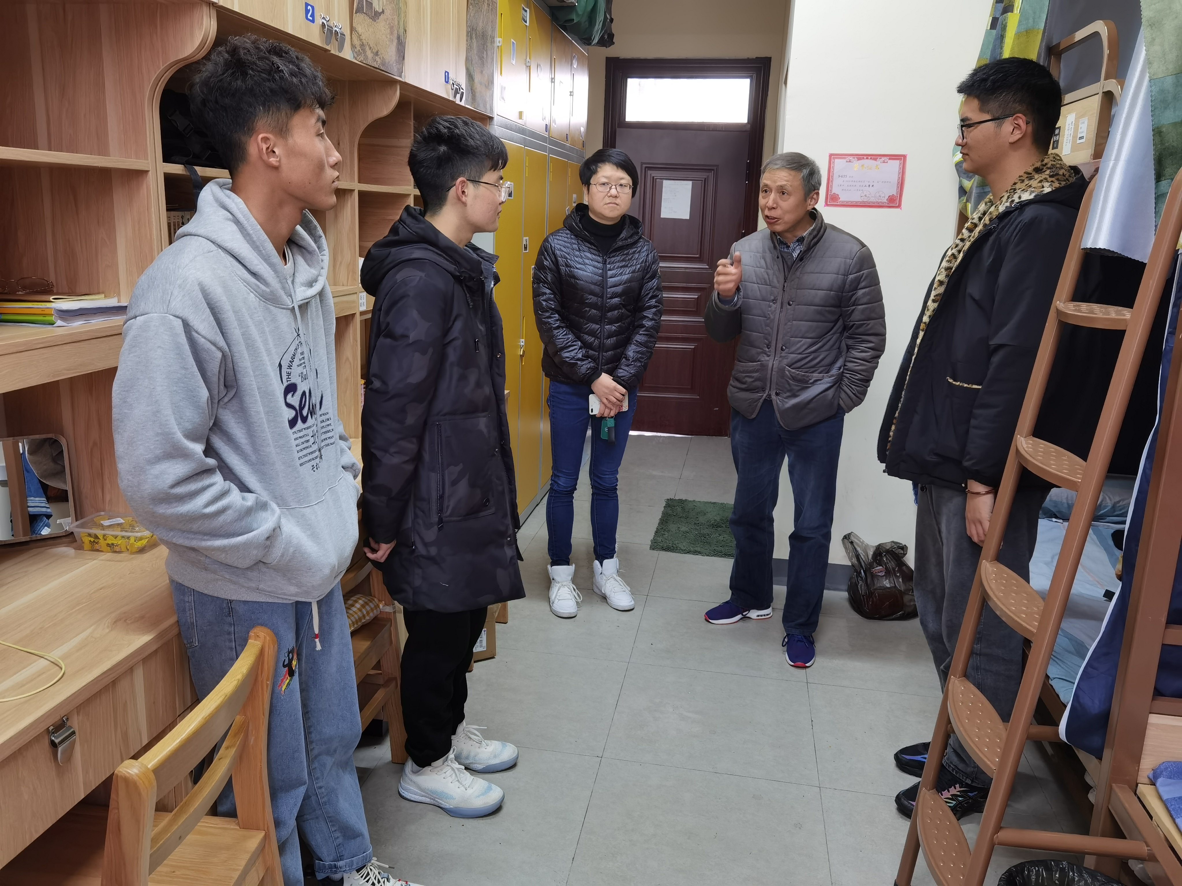 会前,焦洁庆和赵新华还深入学生宿舍,走访看望学生。