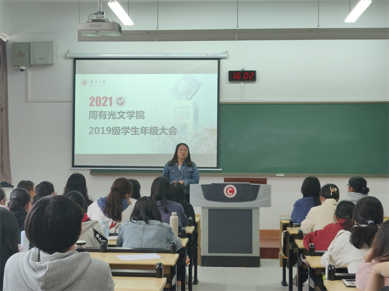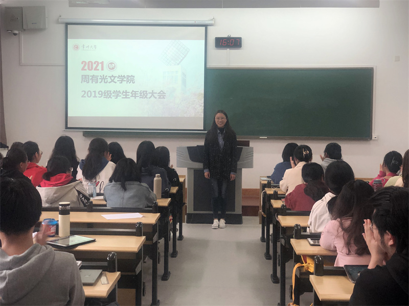 4月26日下午,85po 在立德楼X219召开2019级学生年级大会,学院党支部书记焦洁庆、辅导员徐竹君、潘玙参加会议。