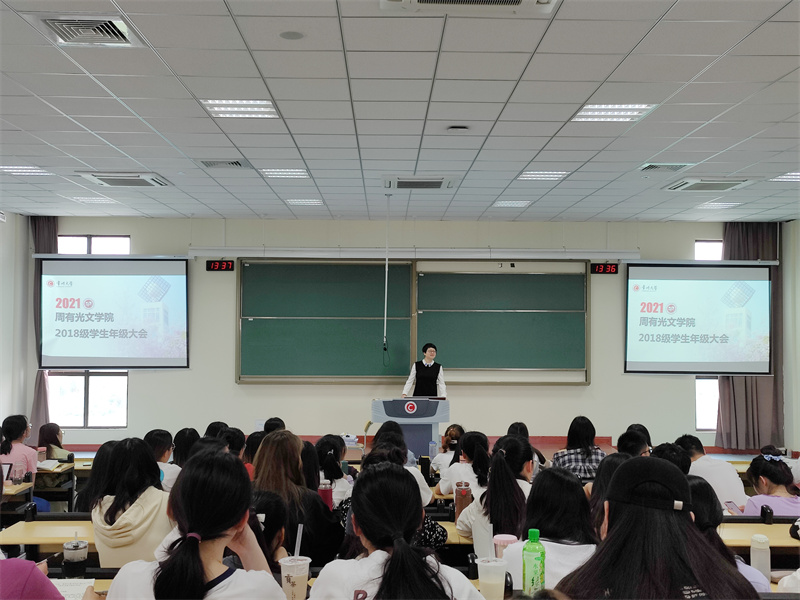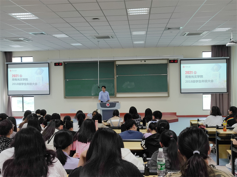 5月11日下午,85po 在立德楼X8阶召开2018级学生年级大会,会议由学院党总支书记焦洁庆主持,学院副院长葛金华、学生党支部2021届毕业生代表杜焕、赵景、孙燕新、王珺璇参加会议。