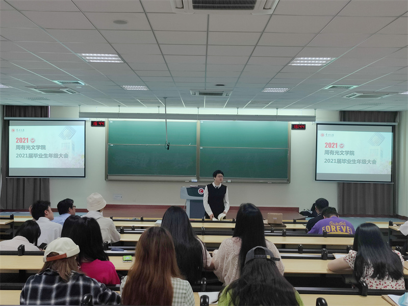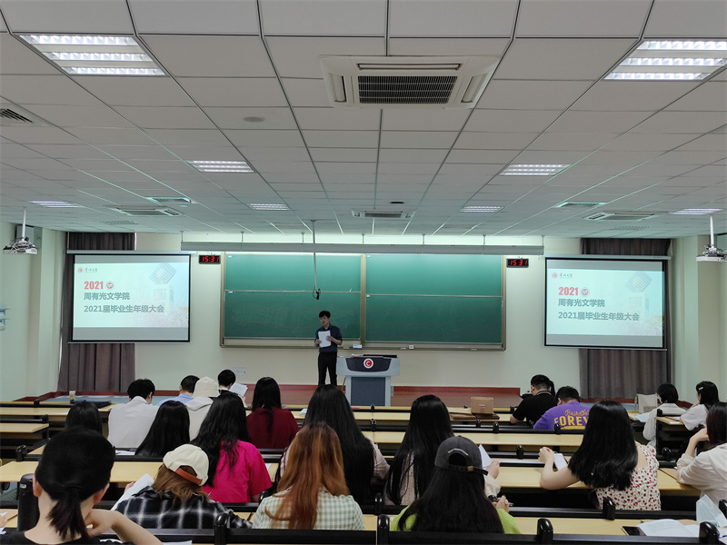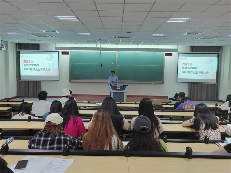5月11日下午,85po 在立德楼X3阶召开2021届毕业生年级大会,会议由学院党总支书记焦洁庆主持,学院副院长葛金华、院长助理王丹、汉语言文学专业负责人付用现、各毕业班班主任参加会议,会议同时邀请商学院辅导员韩婷婷老师作嘉宾,讲解就业相关事宜。