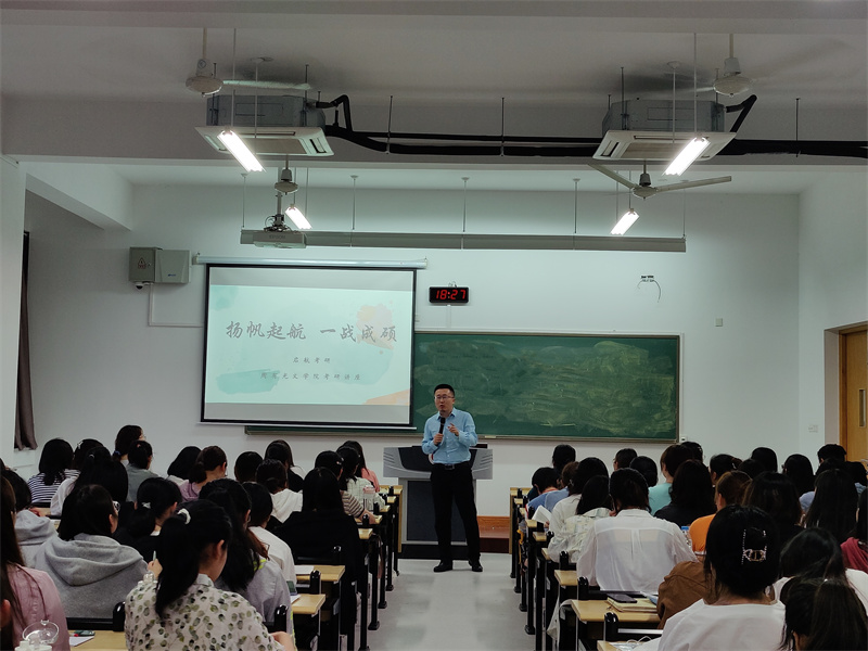接着,吕忠泽针对汉语言文学、学科教学(语文)专业的院校选择、不同阶段如何备考以及复试调剂的准备工作进行分享,分别针对大一、大二、大三学生的备考方式进行了较为具体的阐述,同时针对汉语言文学专业推荐了若干所院校,鼓励学生结合自身情况选择合适的院校,勉励全体同学坚持不懈、合理调节心情,也祝福全体学生考上目标院校。