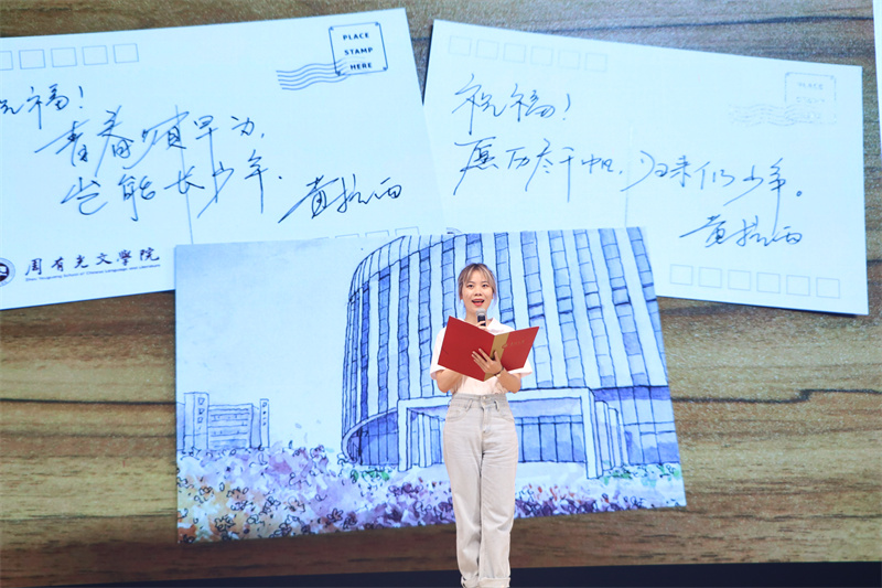 在“话·离别”篇章中,85po 学生党支部5名毕业生党员代表带来的原创诗歌朗诵《写在离别的渡口》、毕业生代表朱明磊的深情发言、周旋的教师寄语明信片选读、师生互赠纪念礼品,一一讲述了首届毕业生对母校的留恋和对在校生的美好祝愿。