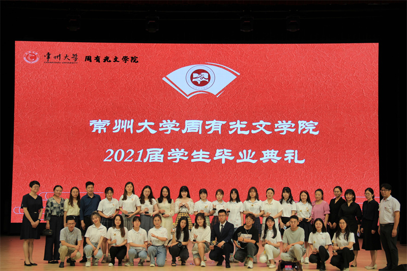 在“展·未来”篇章中,诗歌表演《永远跟党走》讴歌了中国共产党的光荣事迹,激励大家“学史明理 学史增信 学史崇德 学史力行”;在校生代表严佳丽也为全体毕业生们送出真挚的祝福;党总支书记焦洁庆为2021届校友工作联络员颁发聘任证书;副院长葛金华寄语全体毕业生“开心快乐 识事识人 对事物有透彻的认识”。本次毕业典礼在毕业生代表钟育凯演唱的《全世界谁倾听你》的歌曲声中圆满落幕。