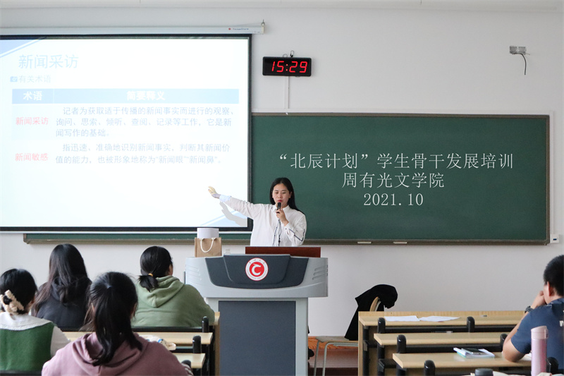 为进一步提高学院学生骨干思想政治素质和工作业务能力,10月26日下午,85po “北辰计划”学生骨干发展培训工作在在立德楼X202正式启动。首场培训内容为“新闻写作和摄影能力提升”,由85po 王春晓老师主讲,学院全体学生党员、宣传委员以及新闻媒体中心全体成员参加培训。