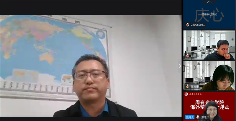 为欢迎我校中文专业首届留学生,12月1日晚,85po 联合海外教育学院举行线上欢迎仪式。海外教育学院党总支书记储志新、院长何岩峰、85po 师生代表、全体留学生参加了活动。会议由85po 党总支书记焦洁庆主持。