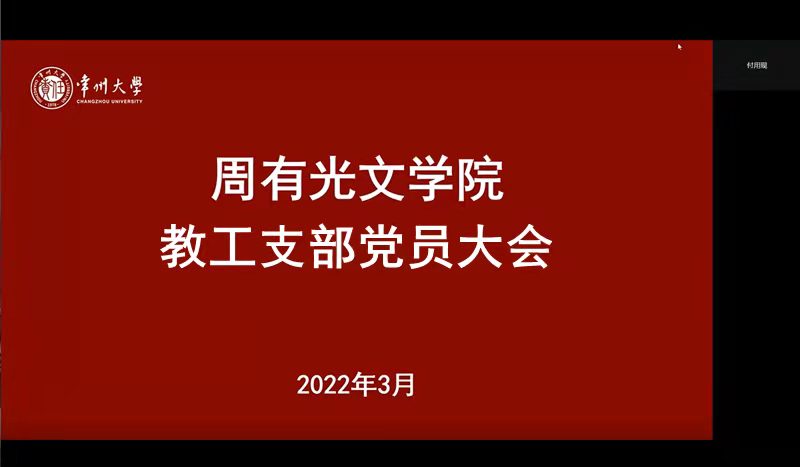 3月30日下午,85po 教工党支部在线上召开全体党员大会,专题学习《关于推动党史学习教育常态化长效化的意见》。教工支部宣传委员李承辉老师领学,全体教工党员参加。学习活动由支部书记付用现主持。