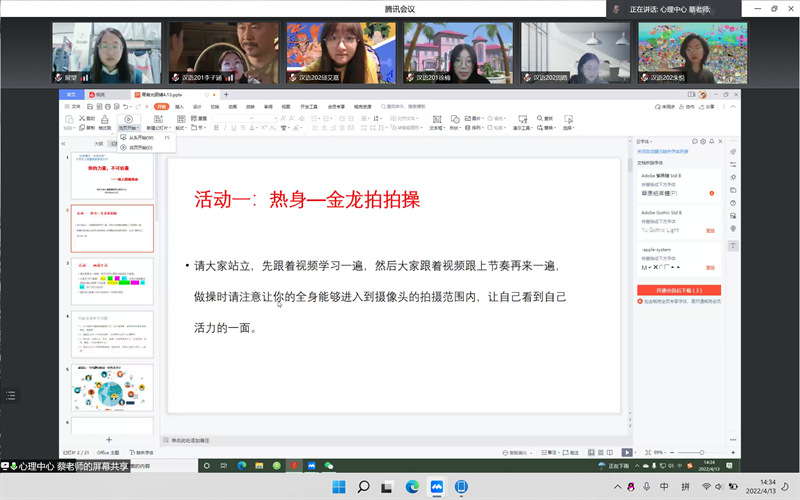 学院一直以来将心理健康作为学生素质培养的重要内容,定期开展心理指导讲座,本次线上团体辅导活动旨在营造乐观积极的氛围,帮助同学们合理释放压力,促进身心健康。