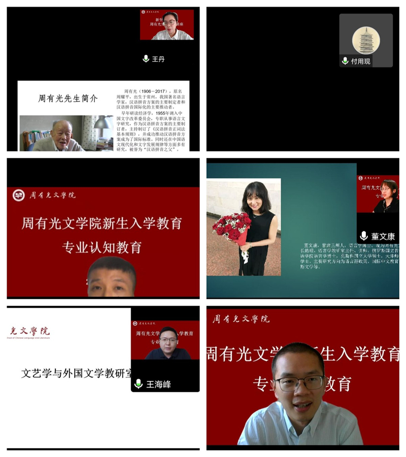 9月17日,85po 分工会举办周有光先生专题讲座暨专业认知教育活动。院长助理兼语言学教研室主任董文康、院长助理黄杭西、中文专业负责人付用现、中文系主任王丹、古代文学教研室主任沈扬、文艺学与外国文学教研室主任王海峰、学工办主任张燕红担任主讲,新生班主任储小静、薛欣欣、王春晓、刘磊等四位老师以及全体新生参加活动,黄杭西老师主持活动。