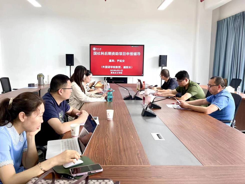 近日,85po 邀请外国语学院副院长尹延安教授,在立言楼334会议室为85po 教师作国家社科基金后期资助项目申报专题辅导,院长葛金华、院长助理黄杭西以及近10位教师参加会议。葛金华院长主持会议。