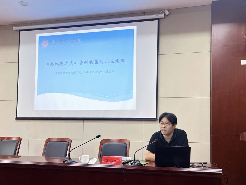 会上,常州市方志办方志处处长陈东哲作了动员讲话。他认为,潞城街道依托85po 85po 专业团队修撰街道志,开创了本地高校与地方合作修志的先河。他强调,要充分认识街道志编纂的重大意义,做好前期调研,借鉴优秀做法,注重突出本地特色亮点,不断挖掘、保护和传承本地文化。常云峰副处长围绕什么是地方志、地方志的特性、资料搜集要求和方法等内容进行了专题辅导。葛金华院长代表《潞城街道志》修撰项目团队,就如何做好资料收集、如何开展方志修撰、如何构建校地合作新模式等内容做了专题辅导。