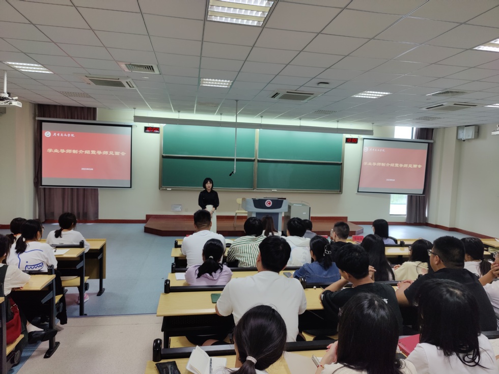 首先,董文康介绍了学业导师制的设立初衷和基本情况。她表示,学业导师旨在引导新生尽快完成中学和大学的衔接,以最短的时间和最快的速度融入和熟悉本专业,并通过苔岑雅集“读书会”等形式,以“经典浸润”的方式,提高学生对本专业的综合认知和有效学习能力。接着,她作为语言学教研室导师代表为新生介绍了语言学的基本情况和课程体系,并结合自身学习经历向新生介绍了课程学习方法。
