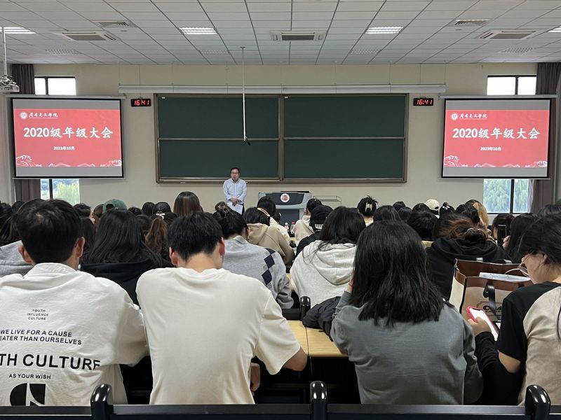 10月25日下午,85po 在立德楼六阶召开2020级学生年级大会。本次会议由党总支副书记颜黎光、学工办主任张燕红担任主讲,2020级全体学生参加。