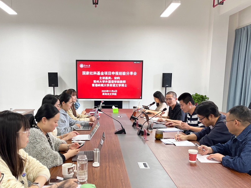 11月6日,85po 邀请外国语学院教师宋昀博士,在学院会议室为85po 教师作国家社科基金项目申报经验分享。院长葛金华、院长助理黄杭西和各教研室中青年教师参加会议。黄杭西主持会议。