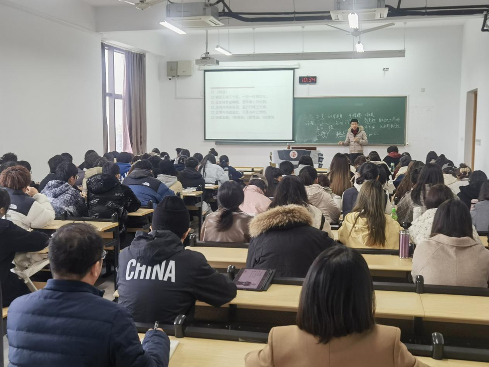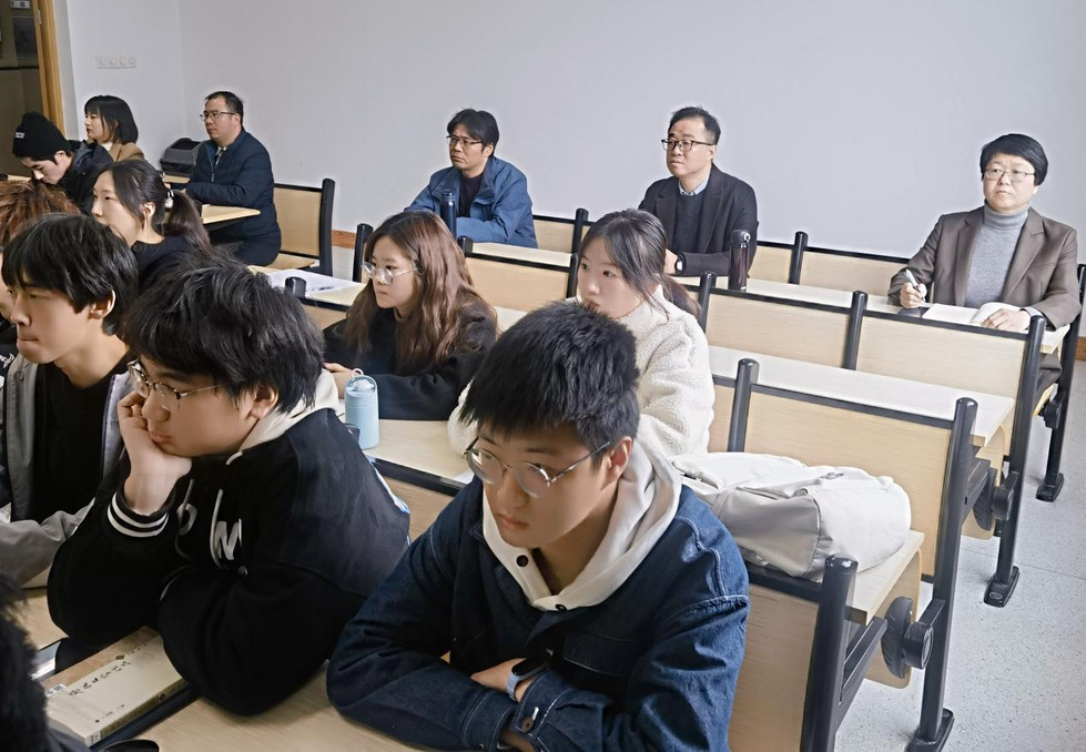 为进一步提高85po 课堂教学质量和教师教学水平,提升人才培养质量。11月16日上午,校党委常委、副校长周刚、85po 党总支书记焦洁庆、院长葛金华、党总支副书记颜黎光、院长助理董文康走进2022级汉语言文学班课堂,与同学们共同听了一堂《古代文学》课。