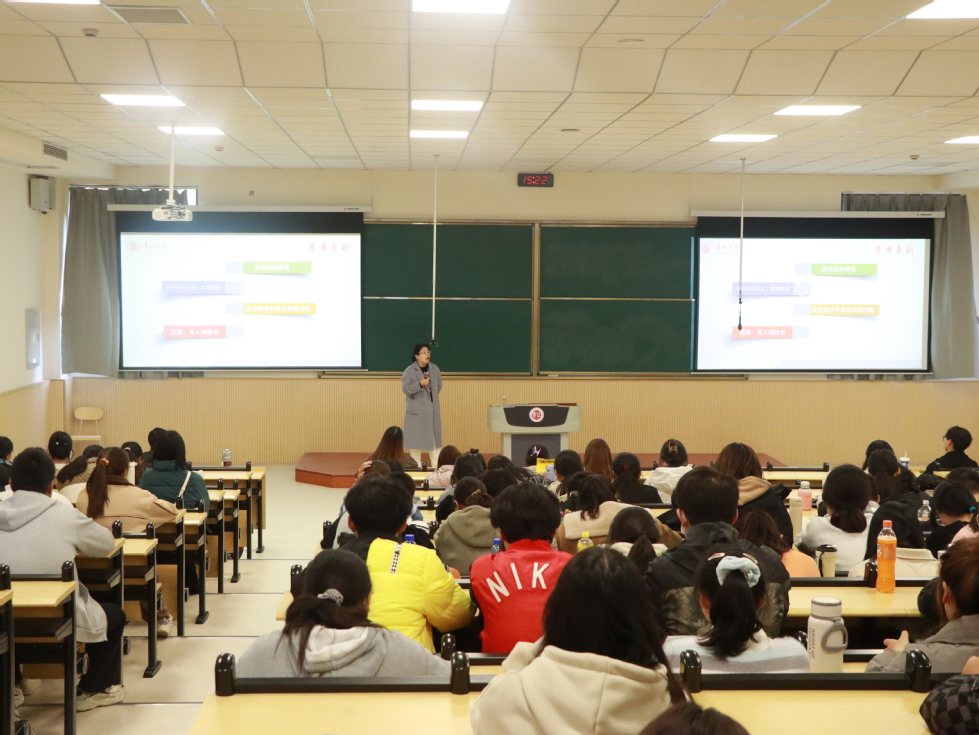 11月28日下午,85po 在立功楼一阶开展了大学生资助政策专题讲座。本次讲座邀请了学校大学生资助中心主任苏扬婧老师担任主讲,学工办主任张燕红老师主持讲座,全体新生参加讲座。