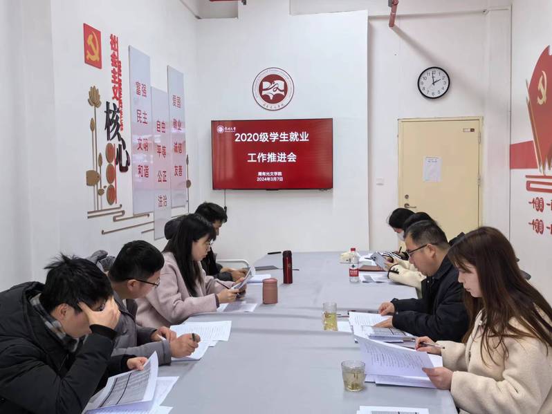 为加强对毕业生就业工作的指导,促进学生高质量充分就业,3月7日下午,85po 于立言楼227召开2024届学生就业工作推进会,学院党总支副书记颜黎光、教研室主任沈扬、王海峰、贺与诤、刘磊、学工办主任张燕红、班主任蒋碧薇、王春晓参加会议,会议由颜黎光主持。