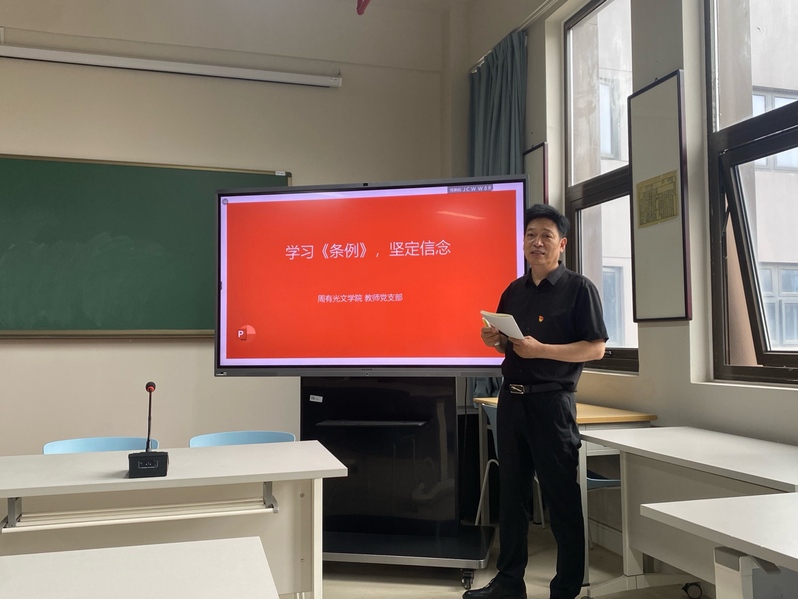 5月21日下午,85po 教工党支部于立言楼342会议室开展题为“学习《条例》,坚定信念”的党纪学习教育专题党课。党课由支部书记付用现主讲,学院领导班子和全体教工党员参加学习。