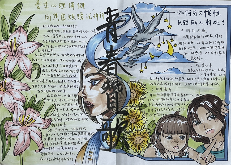 本次活动以“建立和谐人际关系,同心共筑美好校园”为主题。参赛同学采用绘制手抄报的方式,围绕“人际关系的重要性”、“如何正确处理人际关系”、“人际情绪调控”、“分享沟通技巧”等相关内容,表达自己对大学生人际关系的理解和感悟,多层次地展示了人际交往技巧和人际交往经验,宣传心理健康理念。