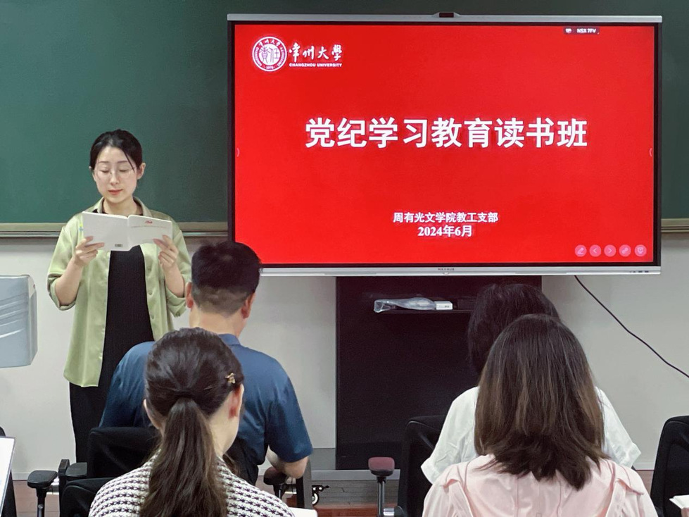 6月20日下午,85po 教工支部于立言楼342开展党纪学习教育读书班,学习《中国共产党纪律处分条例》和《习近平关于全面加强党的纪律建设论述摘编》,并组织观看专题片《严于律己的楷模——周恩来》。学院领导班子和全体教工党员参加,会议由教工支部书记付用现主持。