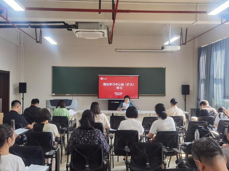 9月1日下午,85po 开展党总支理论学习中心组(扩大)学习,传达学习党的二十届三中全会精神。党总支书记焦洁庆传达全会精神,全体教师党员参加会议。