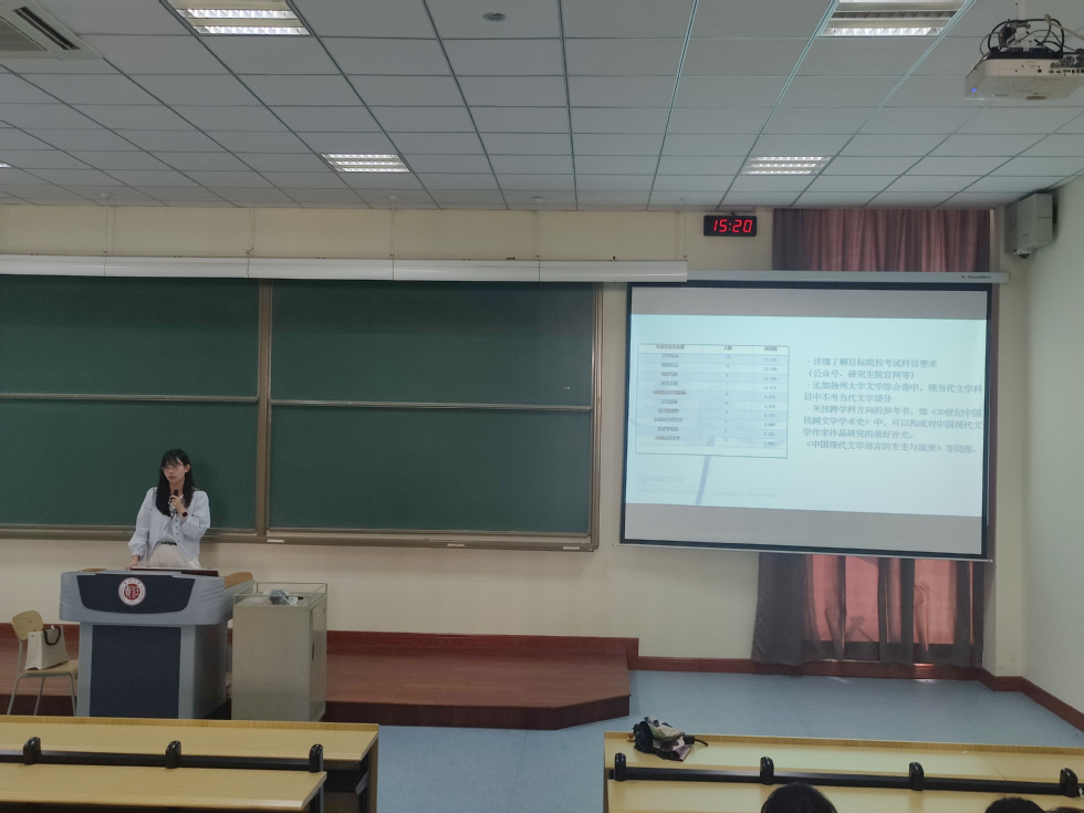 会上,葛金华分析了当前考研的整体趋势与特点,详细阐述了汉语言文学专业相关学科的发展态势、考研目标院校的选择策略及复习计划的调整方法。他指出,同学们应当根据自身复习情况,明确学习目标,采用科学合理的复习策略,全力以赴备考。他鼓励同学们无论选择考研、考公考编还是就业,都要调整好心态,认真准备,积极面对挑战。