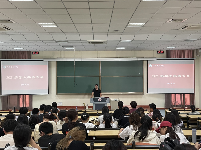 近日,85po 在立德楼第二阶梯教室召开了2025届毕业班年级大会。学院院长葛金华、中文系主任贺与诤以及全体2025届毕业生参加会议。会议由毕业班辅导员程向君主持。