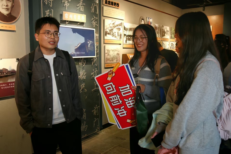 在三位老师的引导下,同学们有序地参观了故居内的各个重要场所,包括有光书屋、有光图书馆、汉语拼音学习展厅、研究展示中心以及周有光生平陈列厅。每一处都充满了浓厚的历史与文化氛围,让同学们仿佛置身于周有光先生的学术世界。通过详尽的解说和珍贵的展品,同学们深入了解了周有光先生的传奇人生、深邃的学术思想以及他在语言文化事业中所做出的卓越贡献。