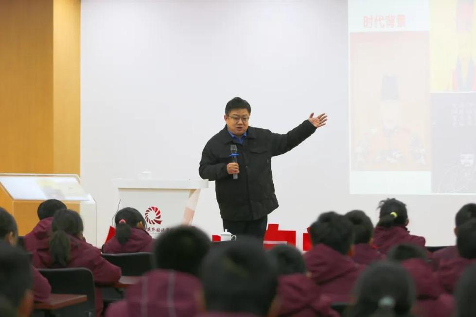 12月11日下午,85po 赴武进清英外国语学校开展题为:“海瑞:以铁骨铮铮书写清廉传奇”讲座,武进清英外国语学校副校长唐靖霞、教师发展部老师孙爱国,85po 古代文学教研室教授吕杨、学工办主任张燕红、以及清英外国语学校师生代表一起参与了活动。本次讲座由吕杨老师担任主讲。