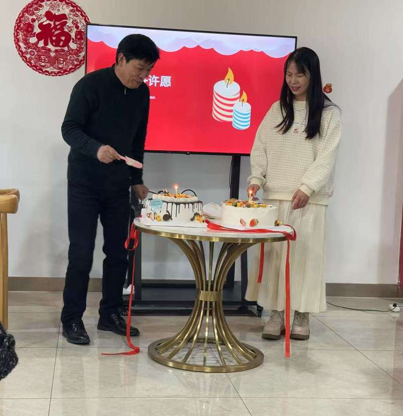 活动伊始,边利丰主席向过生日的教职工们表达了深深的敬意和祝福,感谢大家一年来的辛勤付出和无私奉献。随后,寿星代表付用现老师和张燕红老师一同为大家切蛋糕,大家一起唱生日歌,吹蜡烛,为寿星们送上最真挚的祝福,分享甜蜜的蛋糕。