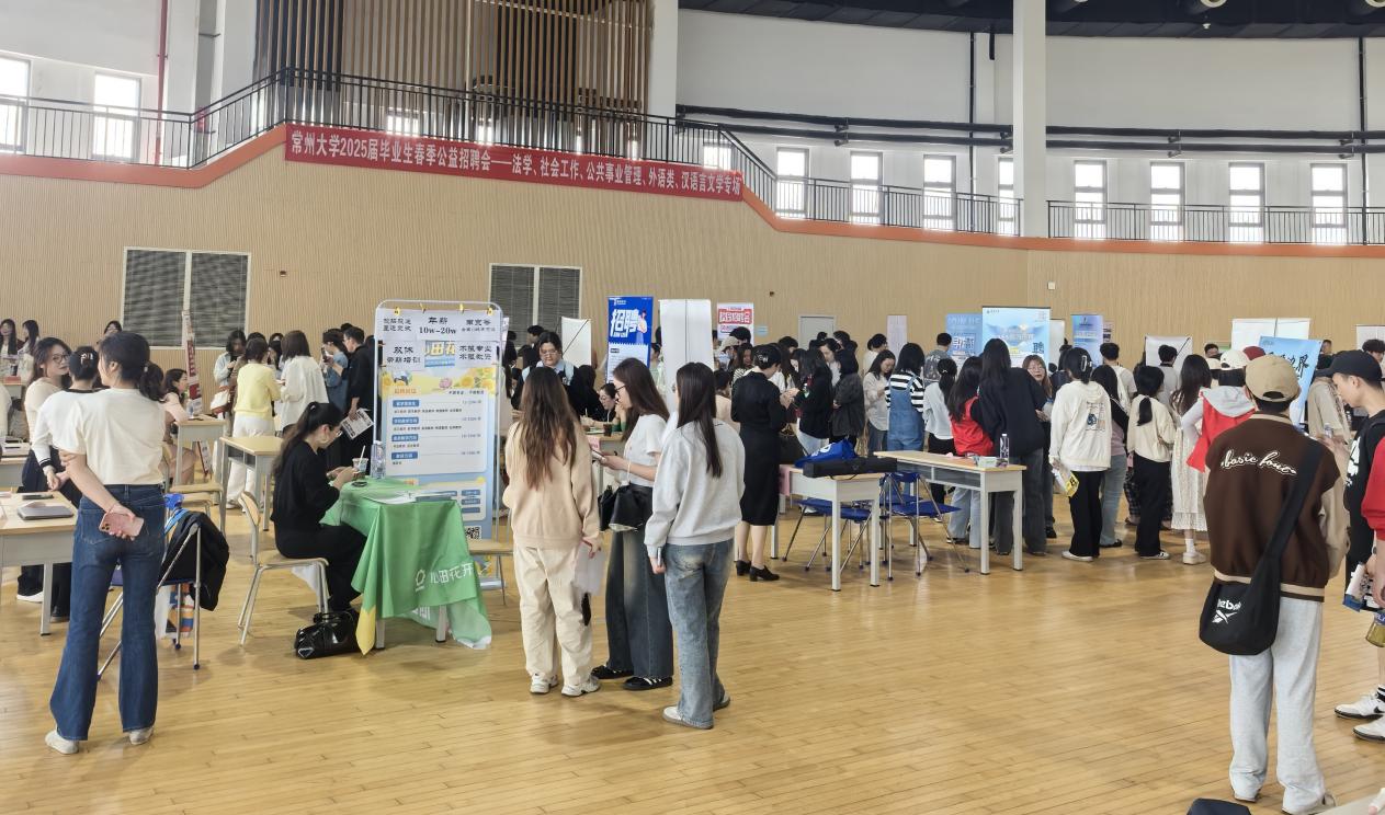 4月9日下午,85po 联合史良法学院、瞿秋白政府管理学院、外国语学院在西太湖校区体育馆成功举办2025届毕业生春季公益专场招聘会。学院领导、辅导员老师与到会企业代表深入交流,了解企业最新需求。