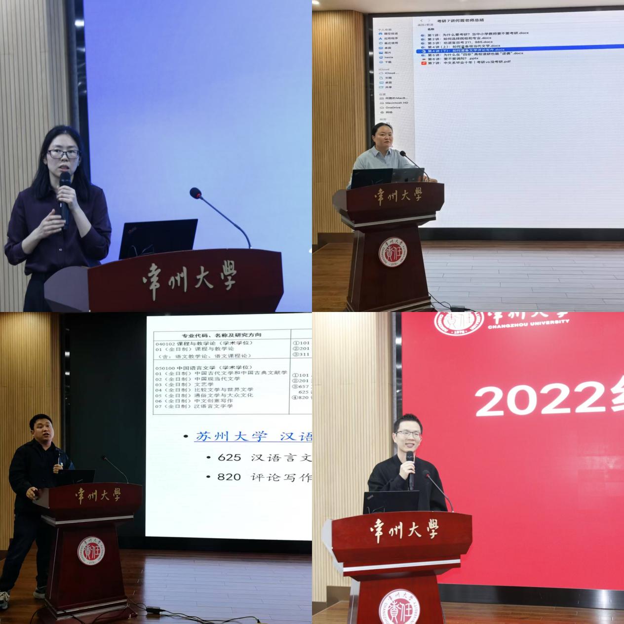会上,教师们结合各自的研究方向和教学经验,系统介绍各专业的学科特性和考研要点。黄杭西分析了比较文学与世界文学专业的发展趋势,建议同学们在选择专业时要将个人兴趣和职业规划相结合。王风丽分享了考研复习策略,并针对古代文学方向提供详细的学习方法和时间管理参考。何霞强调构建现当代文学理论体系的重要性,指出在该方向的复习中要增加阅读和记忆的强度。刘磊深入剖析了语言学考研的整体形势,推荐了一系列专业教材和学术期刊,并讲解了该专业的复习方法、答题技巧等。