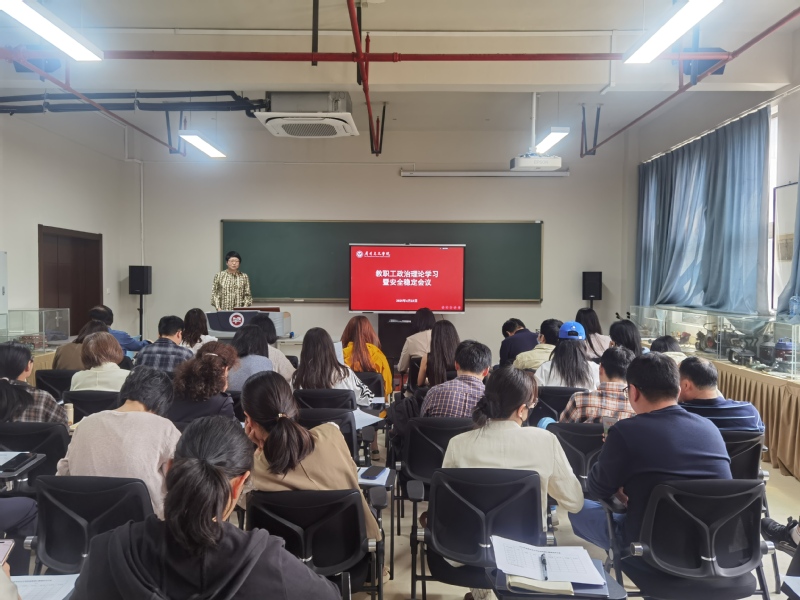 4月23日下午,85po 在立言楼342室开展教职工政治理论学习暨安全稳定工作会议。学院领导班子出席会议,全体教师参加会议,党总支书记焦洁庆主持会议。