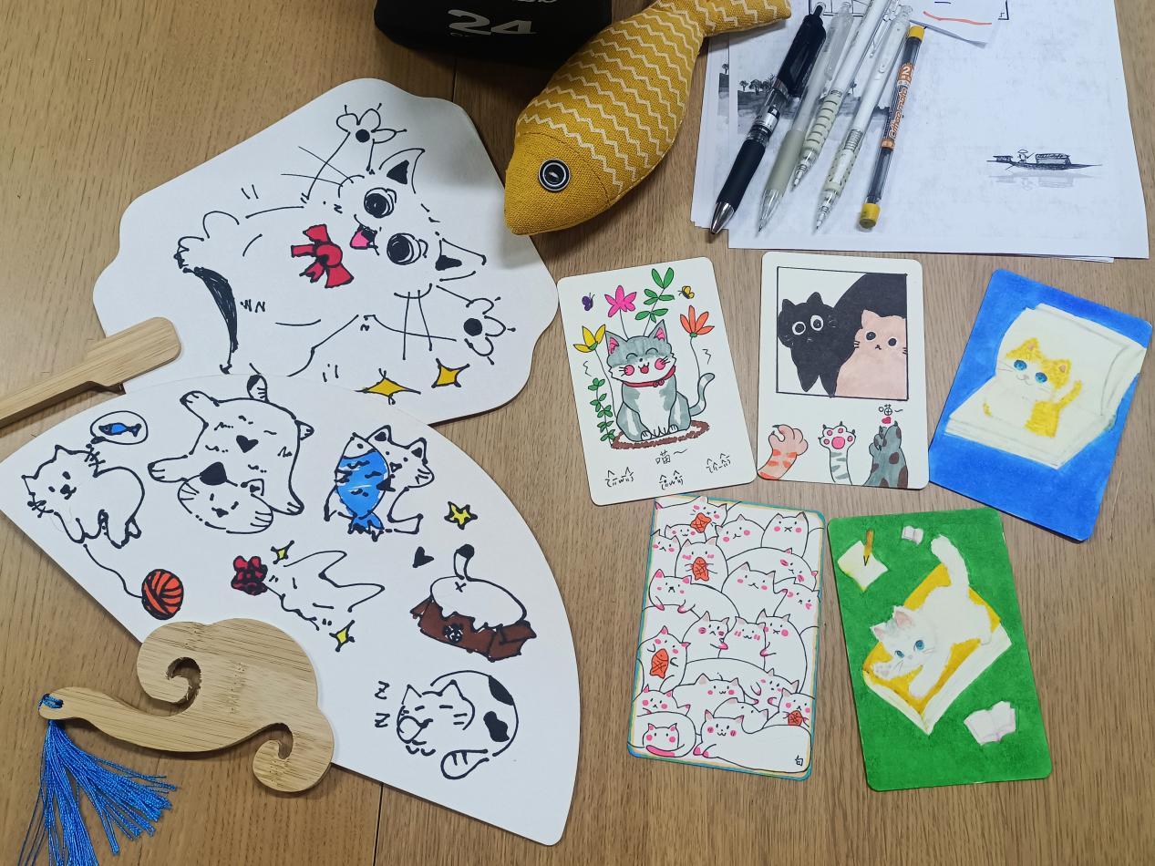 活动现场,学生党员们以关爱动物为主题展开艺术创作,用细腻笔触在书签上勾勒出灵动的猫爪与憨态可掬的猫咪图案,缀以励志短句,既展现了专业特长,又传递出对生命的尊重与关怀。