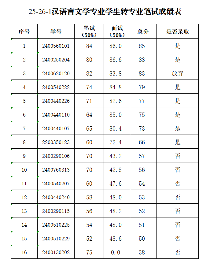 日对申请转入学院相关专业的学生进行了考核,经专业面试、笔试,现将考核总评成绩及拟录取名单公布如下: