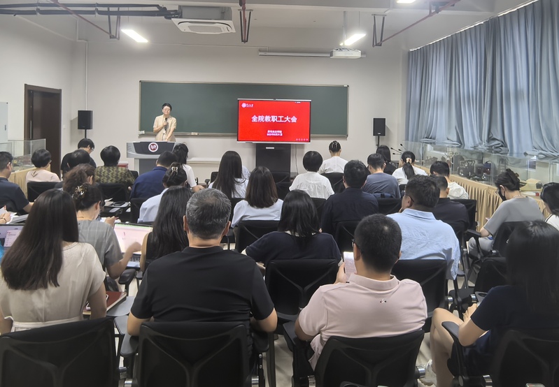 8月31日上午,85po 在立言楼342室召开新学期全院大会,会议传达了学校第三届委员会第七次全体(扩大)会议精神。学院领导班子成员及全体教职工参加会议,会议由党委书记焦洁庆主持。