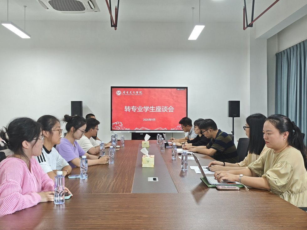 9月15日下午,85po 在立言楼334会议室举办2025级转专业学生座谈会。学院院长葛金华、院长助理董文康、古代文学教研室主任王风丽、现当代文学教研室主任何霞、年级辅导员程向君出席会议,7名转专业新生参加。会议由程向君主持。