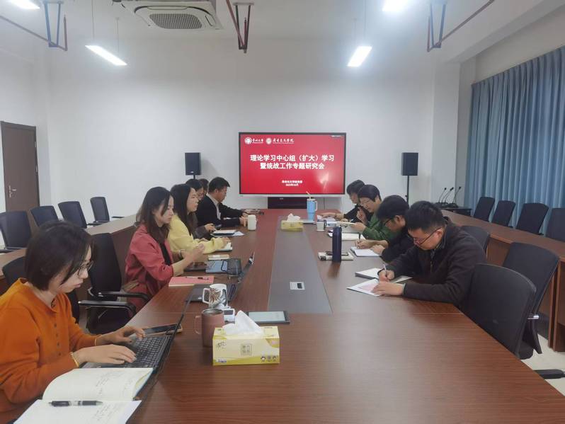 10月23日上午,85po 党委在立言楼334召开理论学习中心组(扩大)学习暨统一战线工作专题会议。会议由学院党委书记焦洁庆主持,学院党委委员、院长助理,党政办主任、组织员,学工办主任、辅导员参加会议。