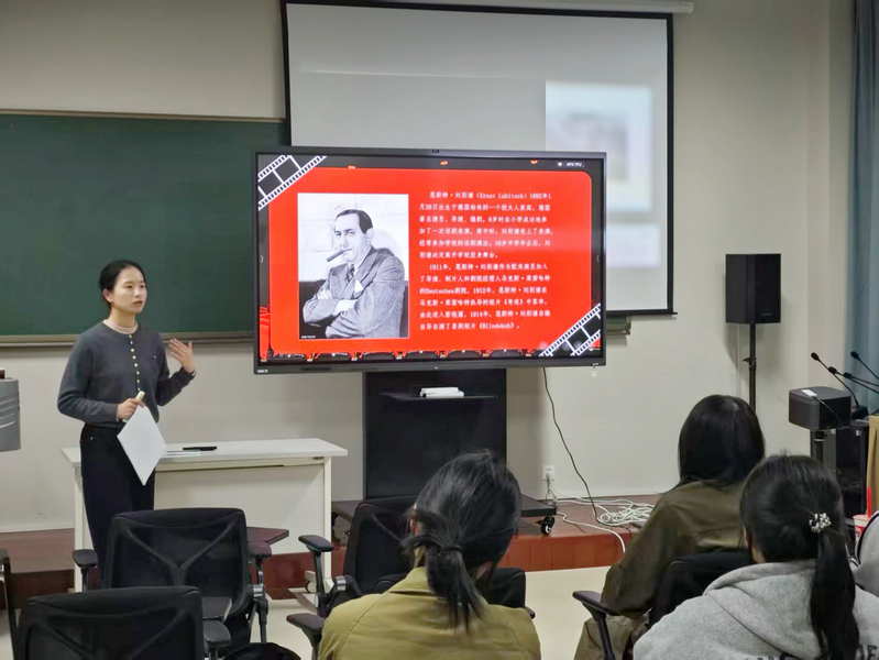 活动以放映与研讨相结合的形式,聚焦德国电影大师恩斯特·刘别谦的代表作《你逃我也逃》(To Be or Not to Be, 1942),带领同学们重温经典喜剧电影的艺术魅力与思想深度。映前导赏中,赵雅婷老师介绍了恩斯特·刘别谦从德国话剧演员到好莱坞电影导演的创作历程,重点解析其以简洁的镜头、精准的节奏与含蓄的喜剧手法为特征的“刘别谦笔触”,并以电影中的“戏中戏”结构为例,阐释刘别谦如何在战争背景下以机巧睿智的叙事呈现讽刺主题。