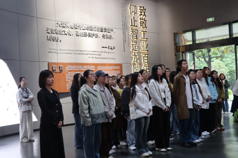 在展览馆内,学生党员们在讲解员的引导下,依次参观了“祉发祥流,产业萌发”“兴业盛章,实业报国”“工业明星,闪耀中国”以及“匠心常传,智能制造”四个主题展厅,系统了解了工业技术从人力驱动到机械化、自动化,再到智能化的历史性跨越,清晰把握了常州工业从起步探索到转型升级的完整发展脉络。一段段生动的影像资料,更让同学们深切感受到了常州工业发展历程中积淀形成的劳模精神、劳动精神与工匠精神。