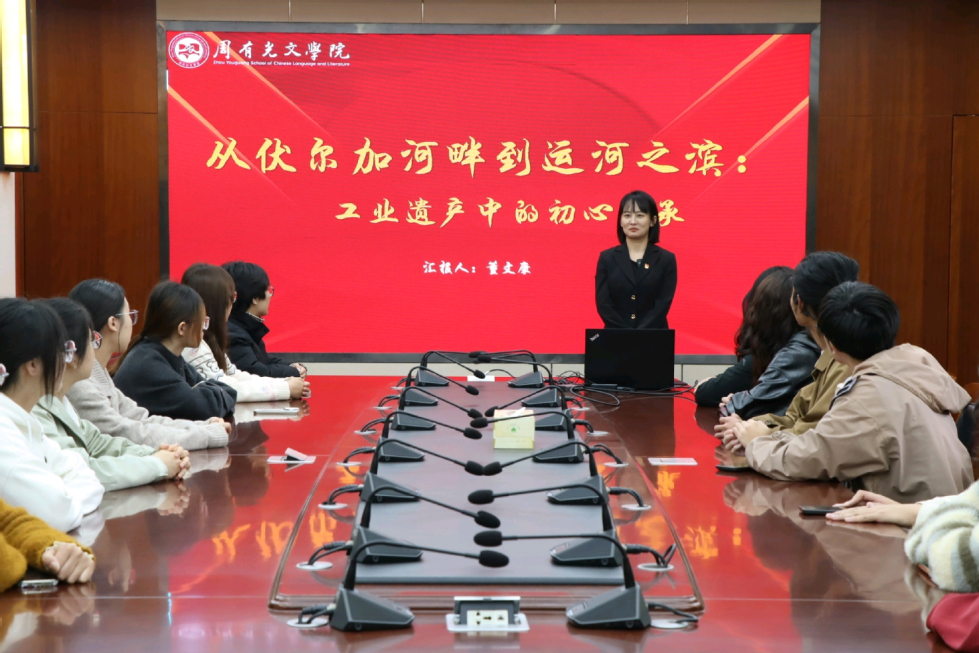 参观结束后,董文康老师讲授“从伏尔加河畔到运河之滨:工业遗产中的初心传承”主题党课。党课围绕“爱国奉献”“艰苦奋斗”“精进创新”三个维度展开,结合戚墅堰机车厂的历史故事与时代价值,引导学生党员深刻认识到工业遗产的生命力在于其所承载的文化精神,激励大家继承先辈遗志,勇于突破技术壁垒,敢于打破思维边界,积极拥抱时代变革。