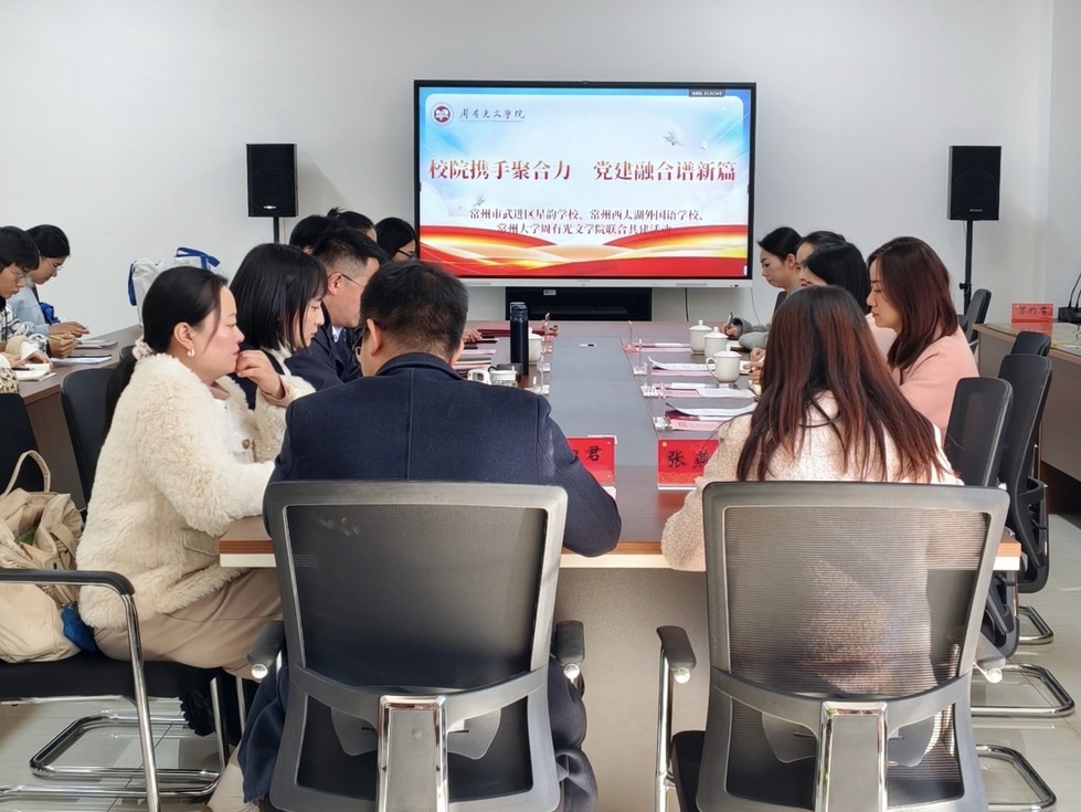 2025年11月19日下午,85po 85po 与常州市西太湖外国语学校、武进区星韵学校在立言楼334举行联合共建仪式。常州西太湖外国语学校副校长钱颖丹、教师发展中心主任石梦娇;常州市武进区星韵学校课程管理中心主任宋玲瑶、党政办公室副主任史叶琴;85po 85po 党委书记焦洁庆、院长葛金华、副院长陈鸿、院长助理董文康、古代文学教研室主任王风丽、现当代文学教研室主任何霞、学工办主任张燕红、团委副书记程向君以及学生代表出席仪式。仪式由副书记嵇炜主持。