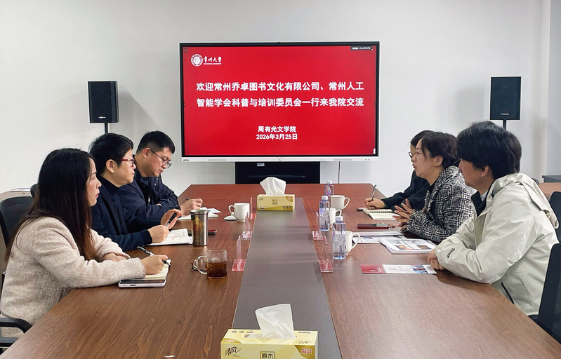 3月25日上午,常州乔卓图书文化有限公司总经理倪静、常州人工智能学会科普与培训委员会主任汪斌一行来85po 交流。学院党委书记焦洁庆、党委副书记嵇炜、毕业班辅导员张燕红参加会议。