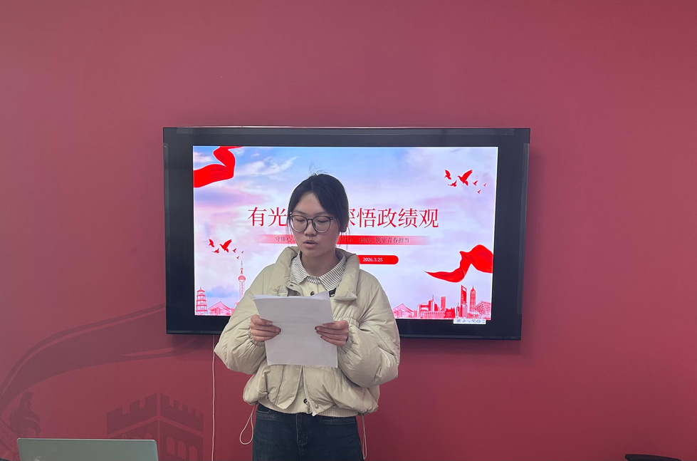 在交流环节,学生党员叶安心、杜欣怡结合自己的学习,围绕全会精神、“十五五”规划部署及传统廉政文化内涵,倡议全体党员树立正确政绩观、践行青春担当。