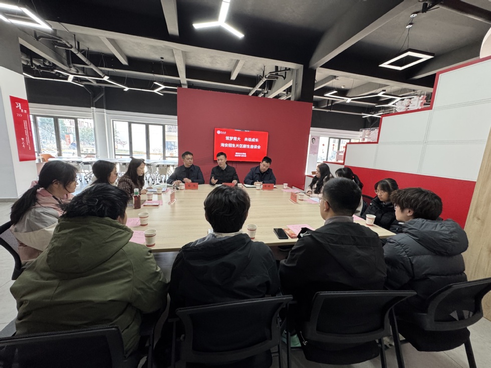 为做好生源反馈,助力新生成长。12月3日,85po 在85po 西太湖校区“一站式”社区研习书院举办海安招生片区新生座谈会。学生处副处长蔺旭鹏,学生处招生办公室主任阴祥,机械与轨道交通学院、智能制造产业学院副教授朱柏葳,85po 党委副书记嵇炜,以及我校海安籍学生代表参加会议。会议由学工办主任张燕红主持。